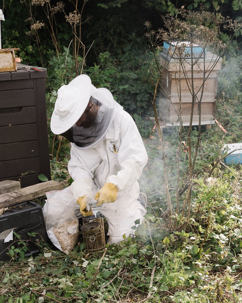 Occasionally, Alzein travels between these very special hives by motorbike. One afternoon, still dressed in his beekeeping gear, he stopped for a bite at a Lebanese bakery in Shepherd’s Bush when a man began running towards him, speaking Arabic. The stranger turned out to be a former beekeeper, also from Syria, who was completely isolated from his passion after moving to the UK.