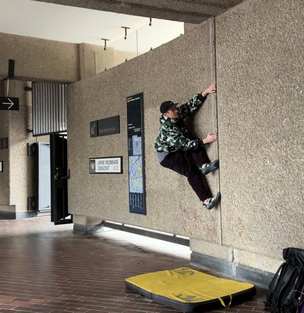 Invited by local buildering experts Alexander Norden and Bobby Gordon-Smith, Kemball tried buildering in London for the first time. “I thought the whole idea was quite funny. I just go and climb a section of a building and give it a climbing grade,” says Kemball. “It piqued my interest enough that I didn’t mind going and trying it for a day to see what it was like.”