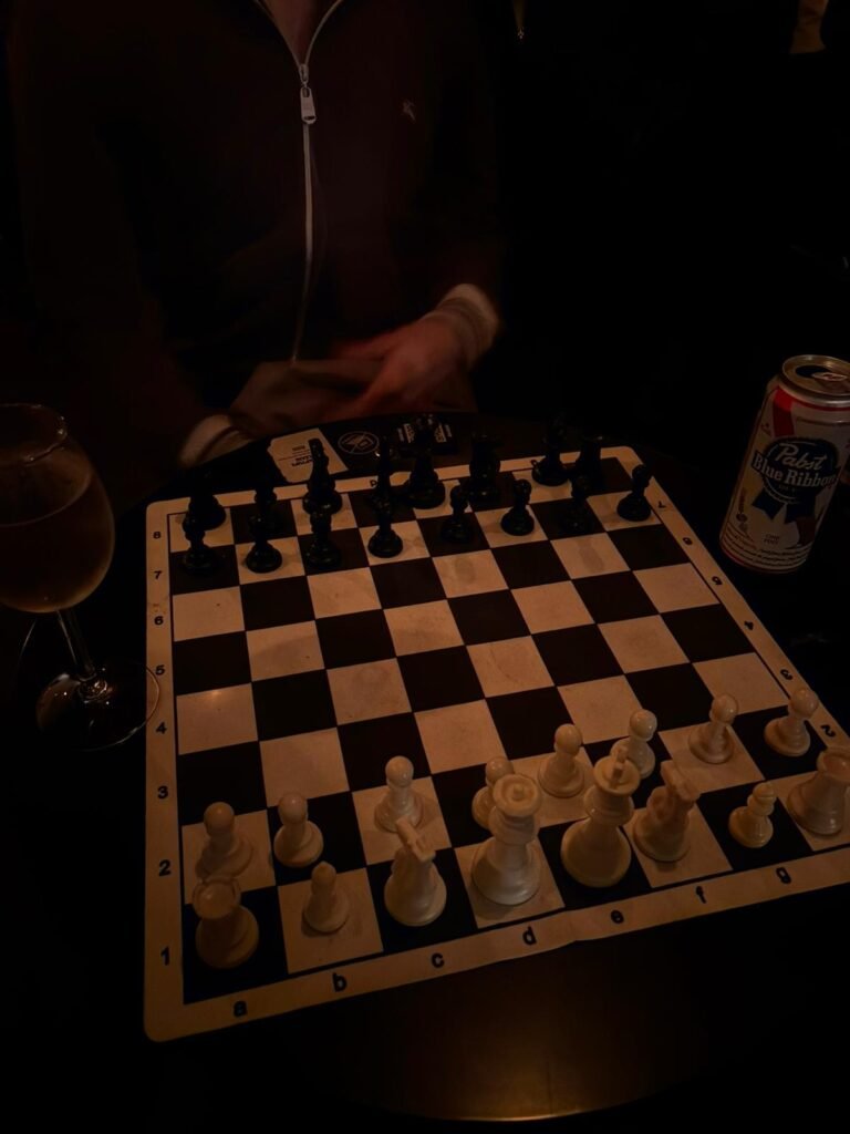 Playing opposite a stranger was nervewracking, but my fears were numbed by my competitive instinct to destroy my opponent. With a glass of sauvignon on one side of the board and a can of Blue Ribbon on the other, conversation bounced between chess strategies, other hobbies, music taste and, only slightly concerningly, past relationships.