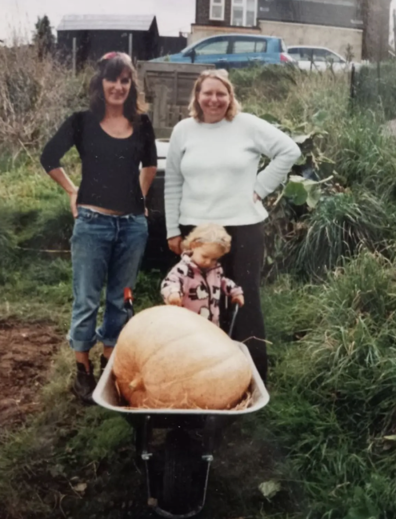 When I was ten months old, we moved out of London. My parents went for a drive in a one hour loop outside the city. They discovered Cuckfield, a small village north of Brighton in West Sussex where my Mum started her allotment. Our patch overlooked fields where horses grazed in the summer, and it was close to the Baptist Church where the Cuckfield Village Show – an annual horticulture and baking competition – was held. The allotments are on a public footpath that used to be my walk to school. There were six plots on our patch including ours. Other plots were occupied by villagers who we got to know over the years. Spending time on the allotment taught me the immense value of quality time in nature. I spent many summer afternoons on our patch that my Mum (Emma, pictured right) shared with our neighbour (Claire, pictured left). Most of my early childhood memories involve me running around the allotment patch picking juicy berries that stained my fingertips red. Despite it only being a small patch, it felt like an entire world to me.